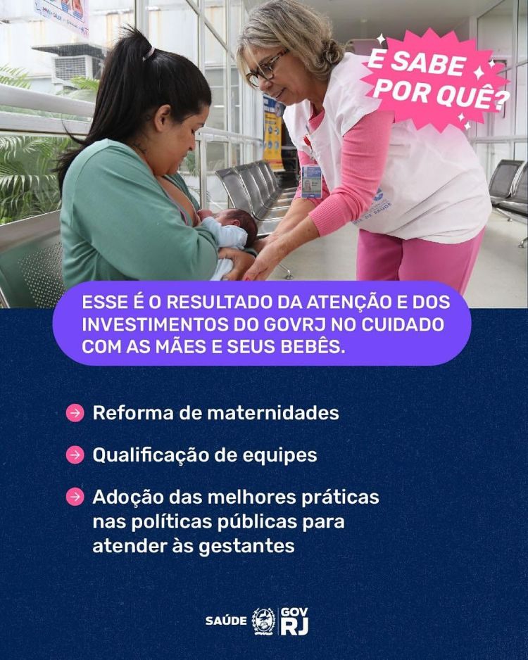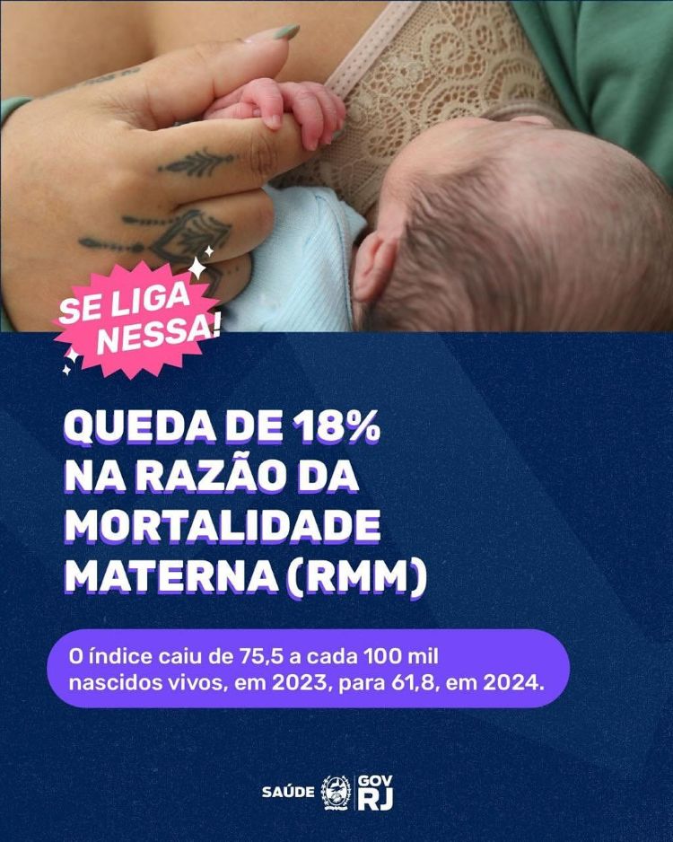 A Secretaria de Estado de Saúde do Rio de Janeiro apresentou importantes resultados no enfrentamento à mortalidade materna. Entre 2023 e 2024, o estado registrou uma queda de 18% na Razão da Mortalidade Materna (RMM), que passou de 75,5 para 61,8 óbitos por 100 mil nascidos vivos. Em números absolutos, a redução foi de 24%, com 101 óbitos em 2024 contra 133 no ano anterior.
