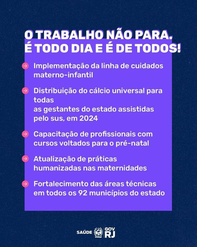 O anúncio foi feito durante o XXXV Fórum Perinatal do Estado do Rio de Janeiro, realizado no auditório da Secretaria. Entre as iniciativas apresentadas, destacam-se a qualificação do pré-natal, a distribuição de cálcio universal às gestantes, a capacitação de profissionais da atenção primária, a implantação da lista de verificação do parto seguro nas maternidades e a atuação do programa estadual “Acolhe”, voltado à orientação e planejamento familiar de adolescentes e jovens.
