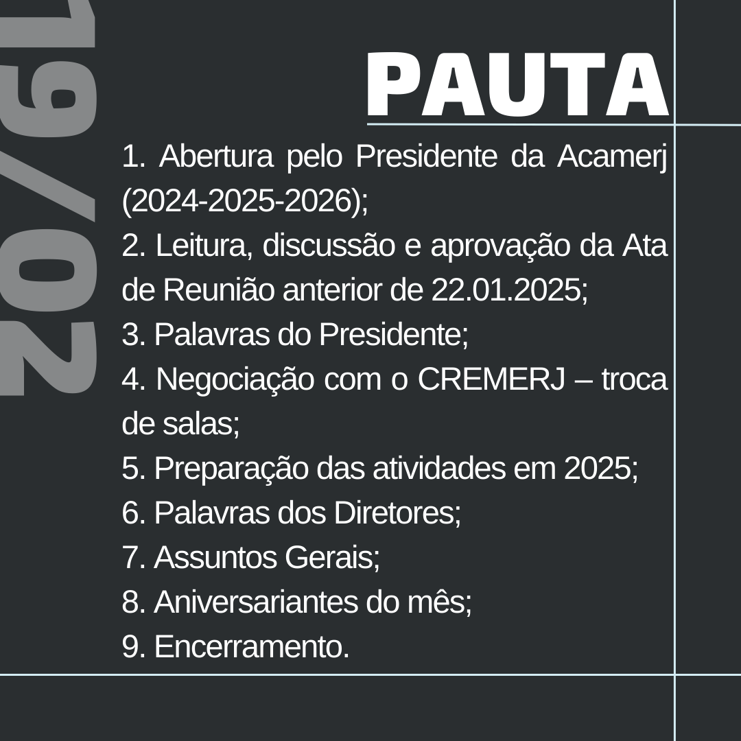 Segunda Reunião de Diretoria | Pauta (Remarcada para outra data)