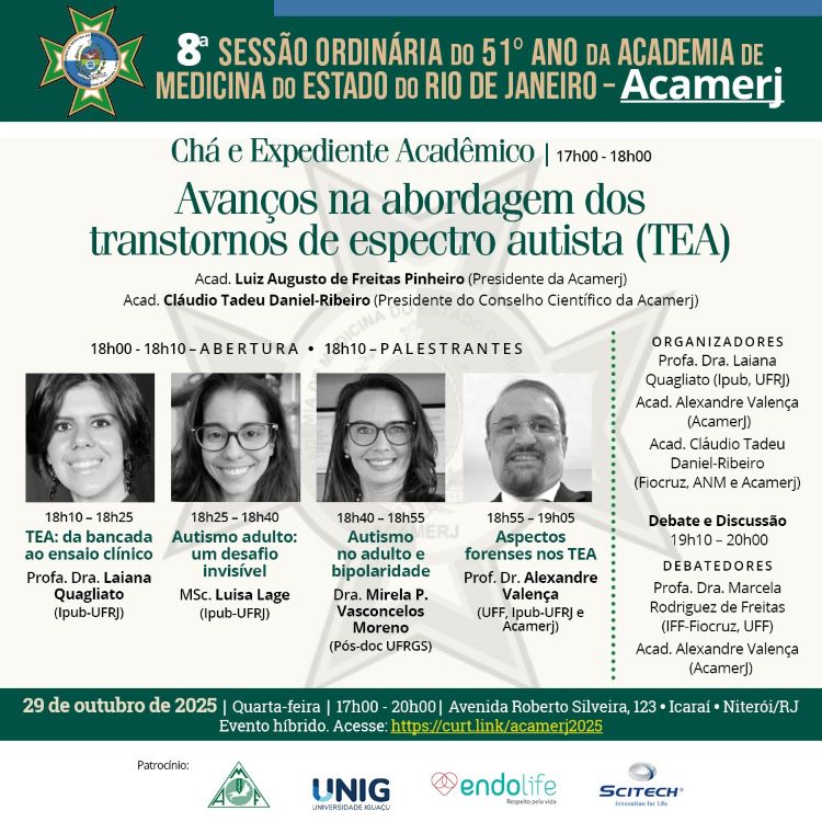 O chá acadêmico, por óbvio, e o expediente, por necessidade, estão cancelados. O acesso às palestras será apenas através da plataforma do Microsoft Teams, disponível através do link: https://curt.link/acamerj2025.
